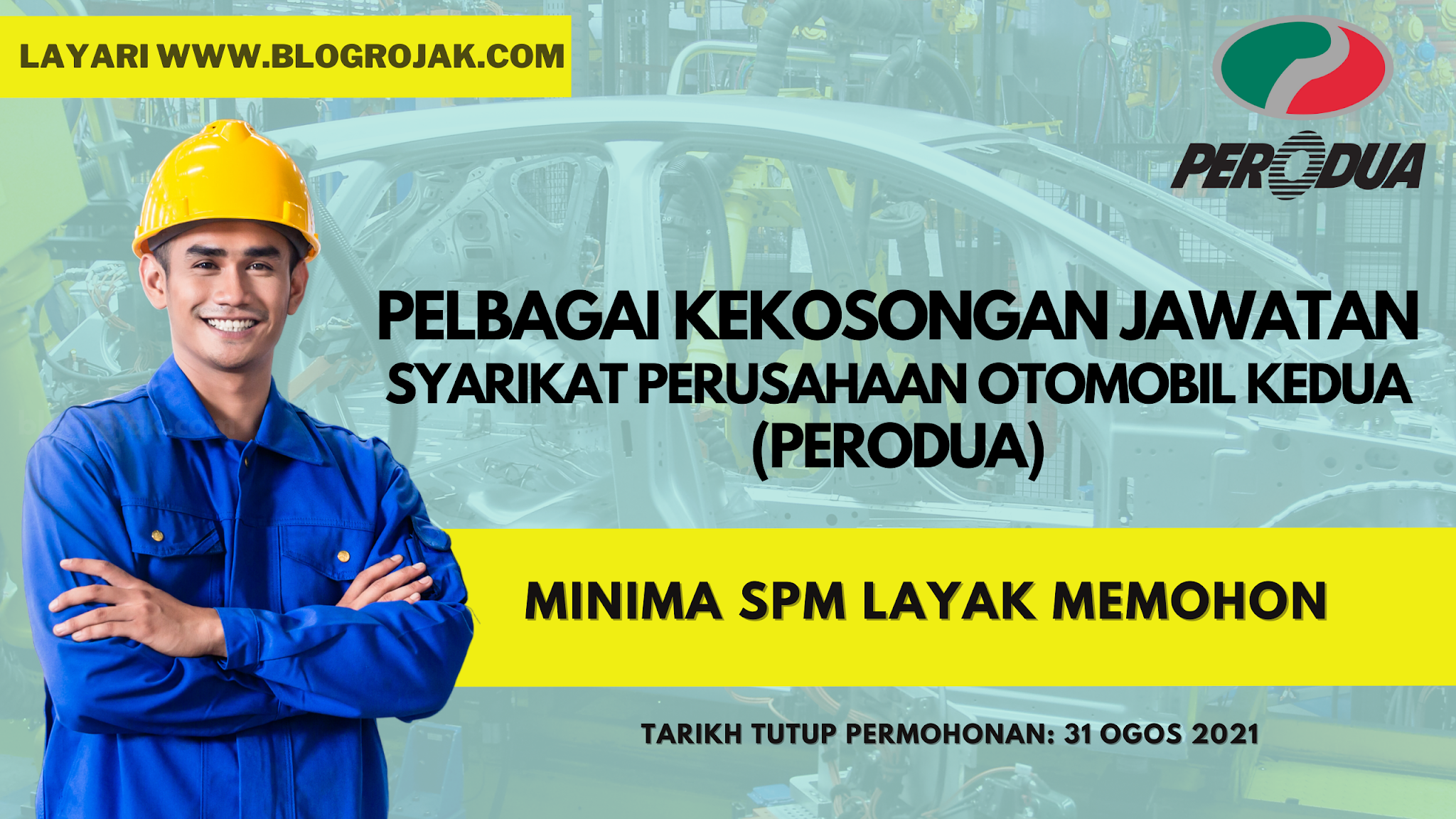 Anda warganegara Malaysia yang sedang mencari pekerjaan? Hah, ini ada berita baik untuk anda kerana terdapat beberapa jawatan kosong yang di buka oleh Syarikat Perusahaan Otomobil Kedua Sendirian Berhad (PERODUA). Jawatan ini boleh diisi bagi mereka yang berkelayakan dan menepati syarat-syarat kelayakan yang diberikan oleh syarikat PERODUA.