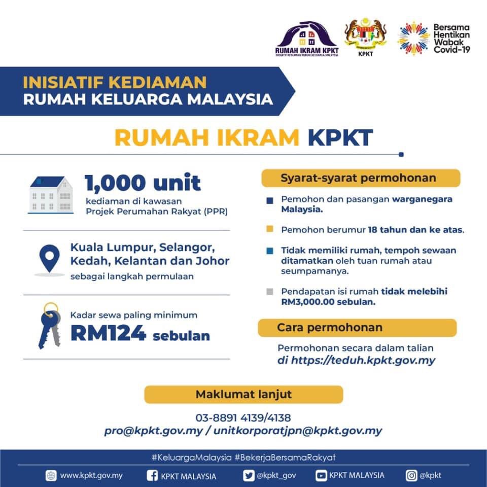 Mereka yang terkesan akibat pandemik COVID-19 dan memenuhi syarat-syarat berikut adalah layak untuk memohon Rumah IKRAM KPKT