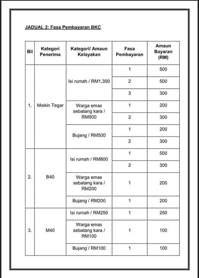 Berikut adalah jumlah bayaran yang akan diterima kepada setiap kategori pada Fasa 2 nanti: