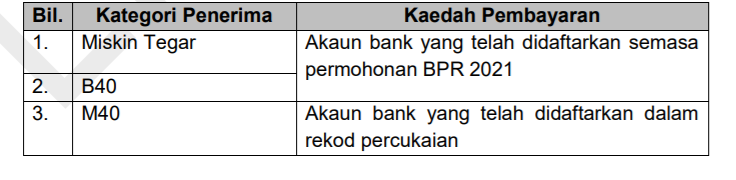 - Nota: Jika anda tidak berjaya dalam rayuan BPR, anda tidak layak untuk bayaran BKC untuk kategori B40.